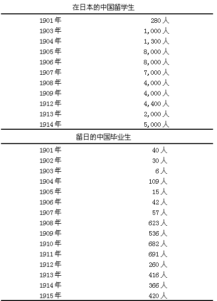 在留学风达到最高峰时,庆祝中也有举家赴日的,如父亲陪着儿子,年轻的中国姑娘和缠足的妇女也前来学习。其中只有少数人来日准备正式学习,或者能够正式入学,所以在日本学校的毕业生虽然人数仍较可观,却大大低于驻留在日本的人数。[6]
