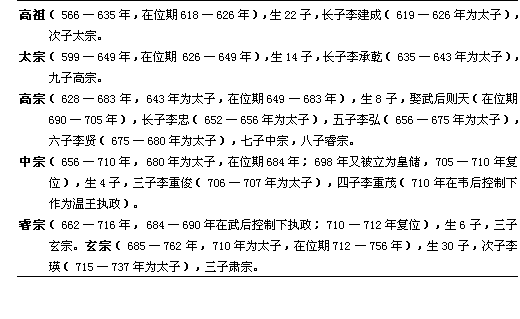 表2唐皇室家系简表