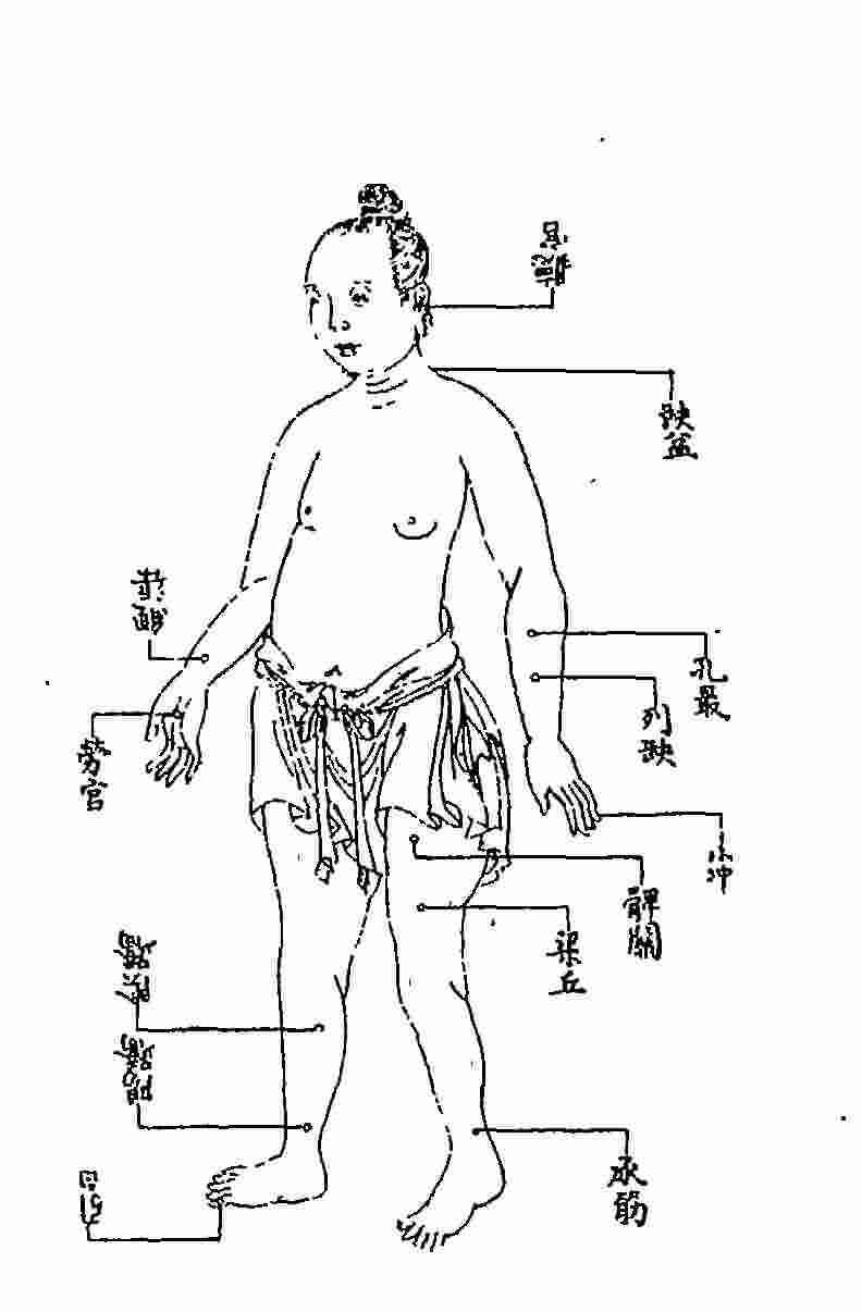 隱白二穴者,木也。足大指端内側,去爪甲角如韭葉、宛宛中。足太隂脉之所出為井。主腹中有寒熱起,氣喘,衄血不止,腹中脹、逆,脛中寒,熱不得卧,氣滿胷中熱,暴洩,鬲(按:通作“膈”)中,嘔吐不欲食。飲渴尸厥不知人脉動如渴飲,身體疼痛唾也(按:似有缺、誤,不通)針入一分。灸三壯。